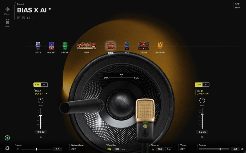 BIAS X includes 33 amp models, 63 FX, 25 Cabs with adjustable Microphones, and an Impulse Response Loader (IR).