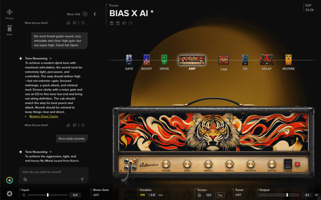 BIAS X includes an AI Assistant that can set your guitar tone for you! You can simply describe the tone you want, and the AI will create it for you – amp, cabinet, FX, the whole thing.