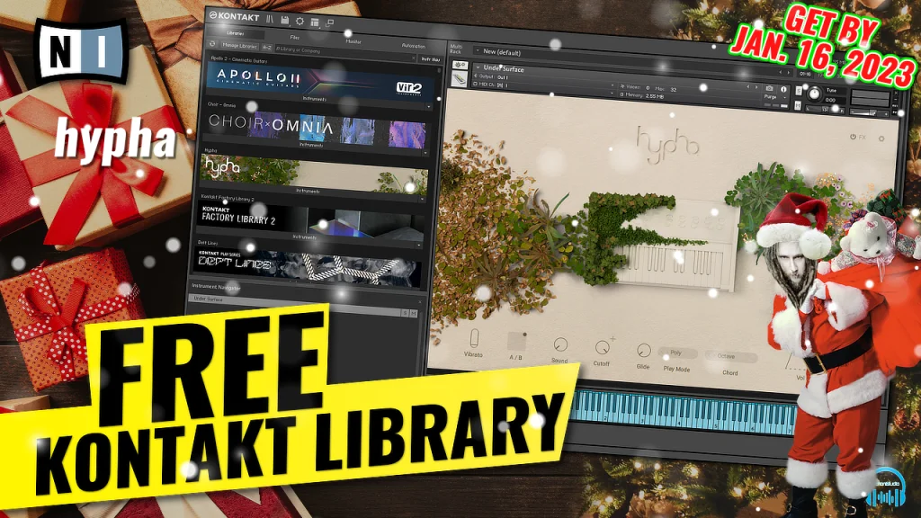 This year they are giving away Hypha, an instrument for KONTAKT. It will run in the full version of KONTAKT or the free Kontakt Player, so EVERYONE can get this instrument.