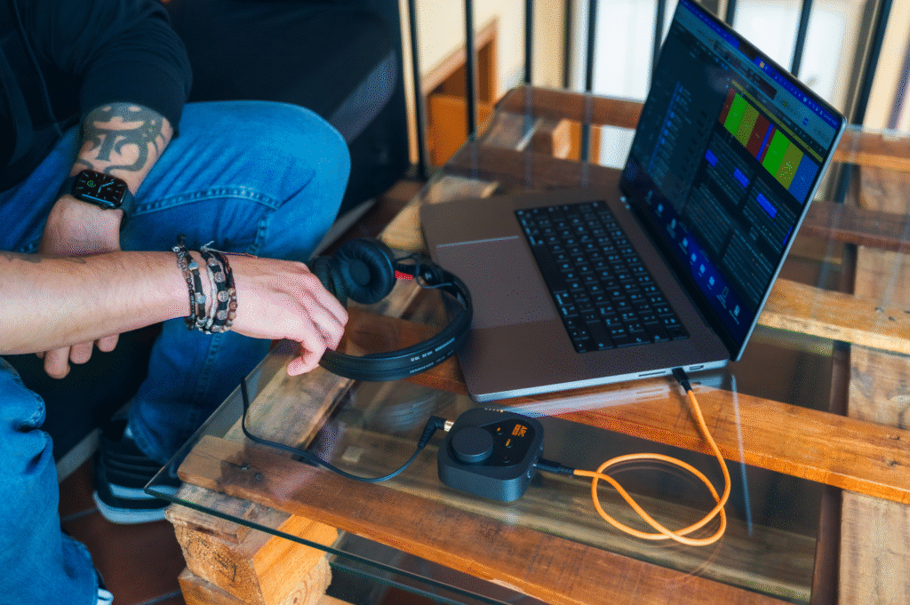 ARC ON-EAR includes USB-C and 3.5mm inputs, so you can use the device directly with your computer (like an audio interface), or with your main audio interface (or mixing desk) with the 3.5mm plugged into a headphone output.