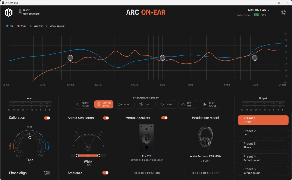 It does all the processing on-board, so there is no need to load plugins in your DAW or use software (after initial setup). That means you can also use ARC ON-EAR with any device that has a headphone output – phone, tablet, mixer, Hi-Fi Stereo, TV, and more.